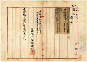 阿緱廳廳令第五號港東上里新厝庄舊庄名新置ヲ牛疫流行地ト認メ牛畜等ノ出入ヲ停止ス