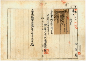 六八 第三号 明治四二年一一月訓令第二五号阿緱庁事務分課規程施行細則改正ノ件[上欄外に「前同断」とあり・六七を見よ]