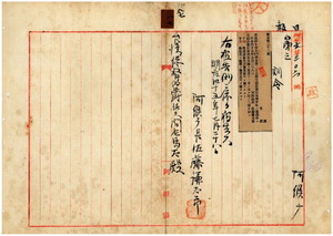 八七 第二二号 明治四四年八月訓令第二五号支庁長委任事項中追加ノ件[上欄外に「元年九月一一日阿庶文第七〇号ニ依リ番号訂正」とあり]