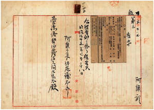 一四五 第三六号 阿緱庁港東中里田乾鮎庄鄭章ハ煙草小売営業鑑札紛失ニ付キ該鑑札ヲ無効トス