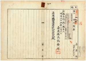四 第一四号 明治四二年一二月台東庁訓令第一七号判任官各官定員中属「一三人」ヲ「一四人」ニ改正ノ件