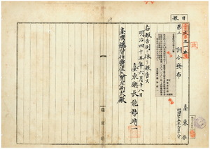 六 第一六号 明治四五年五月台東庁訓令第一二号課支庁及浮浪者収容所判任官各官配置定員中成広澳支庁警部補「三人」ヲ「二人」ニ改メ火焼島浮浪者収容所ニ警部補一人ヲ配置スルノ件