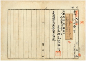 一二 第四号 明治四三年六月台東庁訓令第二八号支庁長委任事項第一項ニ第一九号ヲ追加ノ件一二 第四号 明治四三年六月台東庁訓令第二八号支庁長委任事項第一項ニ第一九号ヲ追加ノ件
