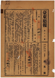 臺東廳訓令第十九號大正元年訓令第十號各課長委任事項中追加