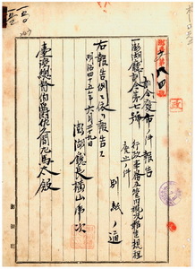 一五〇 第七号 明治四〇年四月澎湖庁訓令第一三号行政事務及管内概況報告規程廃止ノ件