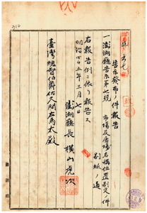 一七五 第七号 市場及屠場管理規則第一条ニ依ル市場及屠場ノ名称ヲ媽宮市場・沙港屠場・媽宮屠場・大赤響屠場・猪母水屠場・通梁屠場・湖西屠場・港尾屠場・良文港屠場・吉見屠場・菓葉屠場・瓦琉屠場・隘門屠場・小池角屠場・内菓屠場・水菓屠場・外菓屠場・花宅屠場・大池角屠場・東吉屠場・竹嵩湾屠場・大嶼屠場・網菓屠場ニ定メ其ノ位置制定ノ件