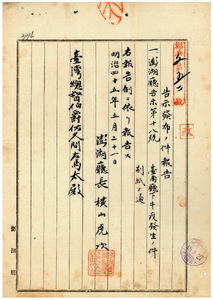 澎湖廳告示第十八號臺南廳ヨリ牛疫發生通知