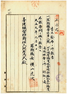 澎湖廳告示第八號阿片煙膏購買吸食特許鑑札並同通帳掠奪セラレタル旨屆