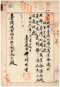 九 財団法人北部台湾外国人商業会議所秘書役エフ・シーホッグ代理エッチ・サウターヨリ委員ジョルジ・ビービートイー・トーマスガ辞任シ、ヒュームトケルガ就任スル旨ノ役員変更届ノ件軍部ヘ交渉方照会ノ件ニ付テ台湾総督府陸軍参謀長宮本照明ト交渉シタル処、同規程中台湾地租規則ニ依ル地図取扱方ニ関シテ府議決定シ更ニ府令第三五号ヲ以テ同規程ヲ改正シ、内訓第一〇号ヲ以テ明治四三年三月内訓第二号別冊台湾国防用防禦営造物区域ニ関スル地図取扱規程第一条割註ヲ改正シ右府令並ニ内訓ヲ官房