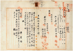 一三 台湾総督府専売局長心得増沢有ヨリ稟申ノ台北庁大加蚋堡大稲花下奎府聚街五五番ノ一ノ土地ヲ専売局煙草工場トシテ使用方認可ノ件(指令第一三五号)