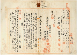 一八 台北庁長井村大吉ヨリ稟申ノ呉啓藩所有ノ民業地ヲ下響庄警察官吏派出所ノ敷地ニ使用ノ為メ大加蚋堡下響庄土名中石路所在廃道敷ノ官有地ト同堡同庄同土名地番四八ノ九ノ民業地ヲ交換スルノ件