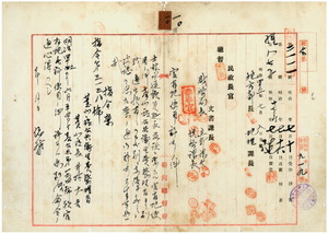 一〇 台北庁公共衛生費整理者台北庁長井村大吉ヨリ願出ノ士林水道鉄管延長敷設ノ為メ台北庁芝蘭一堡大直庄明治橋河元ヨリ大加蚋堡山仔脚庄忠魂堂前マデ官有地無料使用ニ付キ台北庁ヘ許可ノ件(指令第三一三八号)