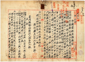 七 新竹庁長家永泰吉郎ヨリ新竹庁竹北一堡新竹街天公壇敷地ヲ新竹街市区改正ノ為メ道路トシテ寄附ノ上同街地蔵王廟ニ合併シ所属財産処分終了及ヒ寺廟台帳異動報告ノ件牙庄神明会徳勝会所属財産ヲ祈念碑修繕ニ付キ土地売却シ以テ修繕費ニ充テル為メ処分許可ノ件(指令第三四六九号)