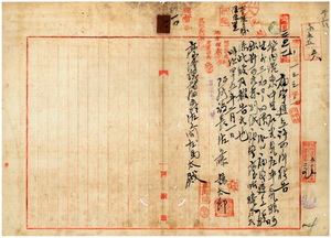 一〇 阿緱庁長佐藤謙太郎ヨリ阿緱庁港東中里石光見庄ノ頼阿生外三名[未記載]ヨリノ廟宇建立願許可報告ノ件