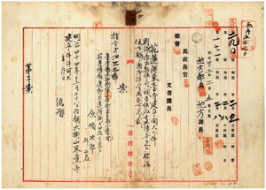 一二 台北庁大加蚋堡山仔脚庄住職梅山玄秀・同庁同堡崔崢西門外街信徒総代荒井泰治・花蓮港庁蓮郷花蓮港街信徒総代原脩次郎ヨリ出願ノ花蓮港庁蓮郷花蓮港街入船通ニ臨済宗大樹山東台寺ノ建立許可ノ件(指令第四三三号)