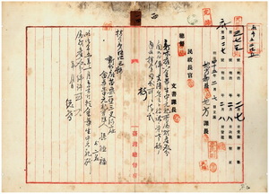 一四 新竹庁苗栗一堡三叉河庄金華生中元祀管理人孫徳福及ヒ総代ノ李陞和ト徐阿石ヨリ出願ノ苗栗一堡三又河庄ノ金華生中元祀所属財産ヲ三叉河支庁庁舎敷地トシテ処分許可ノ件(指令第四四三号)
