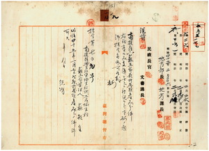 一九 南投庁埔里社堡埔里社街土名埔里社蘇王爺管理人蘇朝金ヨリ出願ノ南投庁埔里社堡埔里社街土名埔里社蘇王爺廟廃廟認可ノ為メ所属財産処分許可ノ件(指令第七〇九号)