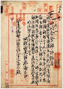 一 阿緱庁港西上里洲濃庄呉彩均ノ管理ニ係ル福徳祀外二九会[未記載]ヲ神明会ニ登録ニ付キ阿緱庁長佐藤謙太郎ヨリ報告ノ件