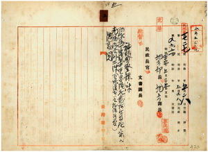 五 阿緱庁港東中里昌隆庄戴阿土ノ管理ニ係ル老福徳会・隆文会・褒忠会・新禁山会ヲ神明会ニ登録ニ付キ阿緱庁長佐藤謙太郎ヨリ報告ノ件