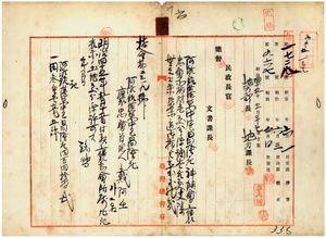 六 阿緱庁港東中里昌隆庄褒忠会管理人戴阿壬及ヒ会員総代ノ戴定安ト戴影ニヨリ出願ノ神明会褒忠会所属ノ土地ヲ台湾製糖会社鉄道用地トシテ処分方許可ノ件(指令第二三一九号)