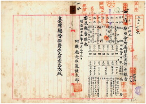 一二 阿緱庁港東下里水底椙庄神明会聖母会所属ノ畑、港東上里武丁潭庄神明会上帝会所属ノ田、同里昌隆庄神明会新福徳会所属ノ畑、同里水底椙庄神明会福徳爺所属ノ畑、港西下里新庄仔庄神明会四仙姑所属ノ畑、港東上里赤山庄神明会宋新恩嘗所属ノ田ノ異動ニ付キ阿緱庁長佐藤謙太郎ヨリ報告ノ件