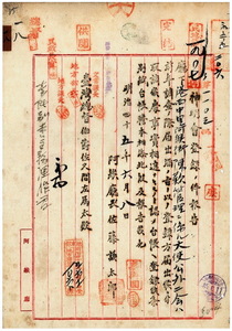 一八 阿緱庁港西中里阿緱街陳歎ノ管理ニ係ル大使公外二会[未記載]ヲ神明会ニ登録ニ付キ阿緱庁長佐藤謙太郎ヨリ報告ノ件