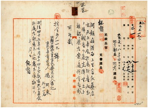 三三 阿緱庁港西上里金瓜椙庄玄天上帝会管理人楊阿束及ヒ会員ノ劉阿宝・劉阿増・劉守仁・劉栄華・劉阿金・劉暢麟・劉帯塙・劉添那・邱連順・鍾運三・鍾阿来ヨリ出願ノ玄天上帝会所属ノ土地ヲ南隆農場ニ売却処分方許可ノ件(指令第一一三号)