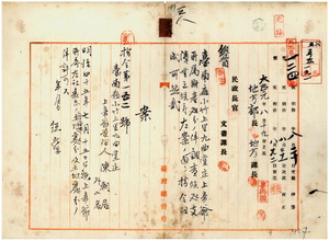 陳朝居外二名上帝爺所屬土地ニ屬スル典權及土地處分許可