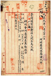 四二 阿緱庁港西上里金瓜椙庄神明会玄天上帝会所属財産ノ異動ニ付キ阿緱庁長佐藤謙太郎ヨリ報告ノ件