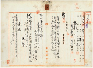 一一 台南庁永康下里三け仔庄所在ノ開元寺管理人林蕃薯及ヒ信徒総代ノ楊鵬槫ト許蔵春ヨリ出願ノ開元寺所属ノ土地ヲ台南水道用地トシテ処分方許可ノ件(指令第二三七六号)