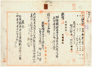 二一 阿緱庁長佐藤謙太郎ヨリ阿緱庁港西中里徳協庄所在ノ神明会孔聖会管理人邱昌古及ヒ会員ノ楊得春・范阿志・葉辛壬ヨリ出願ノ孔聖会所属ノ土地ヲ財源確保ノ為メ処分方許可(指令第三一二五号)、阿緱庁港西中里阿緱街所在ノ神明会観音媽祀管理人陳等及ヒ信徒総代ノ蔡騫ト陳通益ヨリ出願(一二月五日付)ノ観音媽祀所属ノ土地ヲ財源確保ノ為メ処分方許可ノ件(指令第三一二六号)