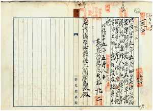 三〇 台中庁猫羅堡阿罩霧庄義援田管理人林紀堂ヨリ寄附サレタ同庁同堡喀哩庄ノ田畑地受納ニ付キ彰化慈恵院長枝徳二ヨリ報告ノ件