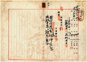 二二 南投庁林砥埔支庁管内頂林派出所警察官殺害事件ヲ審判セシムル為メ四月七日ヨリ臨時法院ヲ林砥埔ニ開設シ台中監獄支監ヲ同所ニ設置シタル件並ニ判官ノ高田富蔵・村上武八郎・富島克治ヲ臨時法院判官ニ兼補シ、検察官ノ早川弥三郎・土蔵達太郎ヲ臨時法院検察官ニ兼補シ任地ヘ出向スルノ件