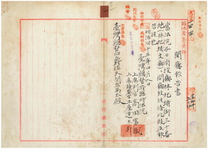 一 台湾総督府臨時法院南投庁林砥埔街ニ林砥埔支庁ヲ開庁並ニ審理済事件ニ付キ台湾総督府臨時法院ノ上席判官高田富蔵ト上席検察官土屋達太郎ヨリ報告ノ件