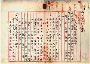 一六 大赦施行情況ニ付キ台北監獄長典獄志豆機源太郎ヨリ台湾総督佐久間左馬太ヘ報告ノ件[台北監獄恩赦人名簿添付]