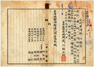 二 台中監獄長台湾総督府典獄武川銓之助ヨリ有期徒刑囚ノ林大目・鐘寿事鐘受・頼阿渓、軽懲役囚候松根、有期徒刑囚ノ蔡引・楊該ヲ特赦釈放シタル旨台湾総督佐久間左馬太ヘ報告ノ件