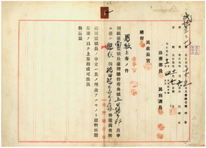 稻田勝太郎外三名特赦上奏並裁可(內閣總理大臣)