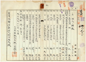 六 台南監獄長台湾総督府典獄上田孫三郎ヨリ懲役囚稲田繁太郎、有期徒刑囚ノ小川辰二・萩原仙吉、無期徒刑囚ノ柯定・陳馬・駱泉・呉錠・余天送・王鎮、有期徒刑囚ノ江貴・黄龍コト黄溜、無期徒刑囚ノ候謀・蔡腸、軽懲役囚塩崎静太郎ヲ特赦釈放シタル旨台湾総督佐久間左馬太ヘ報告ノ件