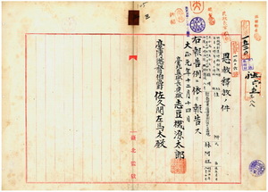 三 台北監獄長台湾総督府典獄志豆機源太郎ヨリ懲役囚林阿旺ヲ恩赦釈放シタル旨台湾総督佐久間左馬太ヘ報告ノ件