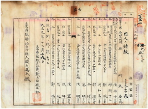 三 台南監獄長台湾総督府典獄上田孫三郎ヨリ懲役囚陳仲呼、有期徒刑囚ノ邱阿丁・劉晩・何和高・鄭澎、軽懲役囚余燈、有期徒刑囚ノ蔡明・洪明・陳塗・洪坤・張旺、重懲役囚郭賜ヲ特赦釈放シタル旨台湾総督佐久間左馬太ヘ報告ノ件