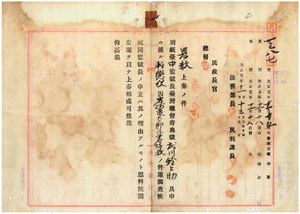 一 台中監獄長台湾総督府典獄武川銓之助ノ特赦申立ニ依リ軽懲役囚岩崎亀太郎(監守盗罪初犯・軽懲役六年・台北地方法院台中出張所明治四〇年一〇月四日判決・同日執行・刑ノ終期大正二年一〇月三日)ノ刑ノ執行免除、有期徒刑囚黄謀(強盗罪初犯・有期徒刑一三年・台中地方法院明治三三年八月二〇日判決・同日執行・刑ノ終期大正二年八月一九日)ノ刑ノ執行免除、有期徒刑囚陳新河(持兇器強盗罪初犯・有期徒刑一五年・台中地方法院明治三一年一〇月二五日判決・同日執行・刑ノ終期大正二年一〇月二四日)ノ刑ノ執行免除、有期徒刑囚葉阿彩(謀殺未