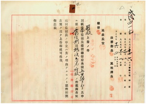 張法外四名特赦上奏並裁可(內閣總理大臣)