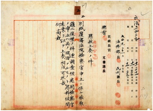 五 覆審法院検察官長代理台湾総督府法院検察官早川弥三郎ノ復権申立ニ依リ刑ノ執行ヲ終了シタル重禁錮囚柴原亀二(官文書偽造行使詐欺取財委託金費消罪・重禁錮三年・覆審法院明治三二年七月六日判決)ヨリノ復権願書ニ対スル復権(資格回復)ニ付キ恩赦上奏裁可執行ノ件