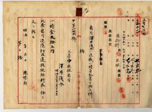 二一 元台中監獄看守沢井浅介ヘ看守退職一時金証書下附ノ件