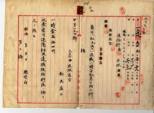 二七 脚気症ニ罹リ退官ノ元台中監獄看守松元直二ヘ看守退職一時金証書下附ノ件