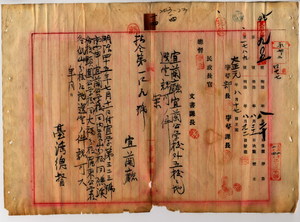 一四 宜蘭庁長小松吉久ヨリ稟申ノ宜蘭公学校ハ本城堡宜蘭街ニ、内員山分校ハ員山堡内員山庄ニ、礁渓分校ハ四囲堡礁渓庄ニ、頭囲公学校ハ頭囲堡頭囲街ニ、大福分校ハ頭囲堡大福庄ニ、冬瓜山分校ハ紅水溝堡冬瓜山庄ニ、敷地選定ニ付キ認可ノ件(指令第一四九号)