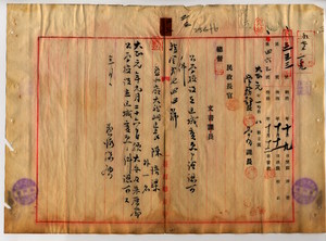 二三 台北庁大龍斤区長陳培梁及ヒ台北庁古亭村区長陳春池ヨリノ区域変更願ニ付キ大安公学校ト朱鮎崙公学校設立区域変更認可ノ件(指令第七四四号)