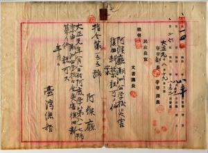 七 阿緱庁長佐藤謙太郎ノ稟申ニ関スル阿緱庁潮洲公学校ノ校舎災害復旧新築認可並ニ工事落成報告ノ件(指令第一七五号)