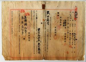 一 曾テ東京府京橋区鈴木町ニ私立日華尋常小学校ヲ設立シタル経験ヲ有スル花蓮港庁璞石閣公学校雇矢田藤孝(本籍地東京府京橋区鈴木町)ヨリ丙種公学校教諭教員無試験検定出願ニ付キ免許状授与ノ件