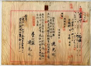 三 基隆庁頂双渓公学校槓仔椙分校勤務台湾公学校訓導連光廷(本居地台北庁三貂堡頂双渓庄土名頂双渓街)ヨリ台湾公学校訓導無試験検定出願ニ付キ免許授与ノ件